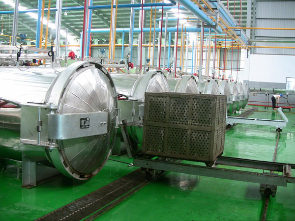 3、電腦程控全自動 ,恒溫、恒壓,回轉式,噴淋風扇內循環等系列臥式殺菌鍋。